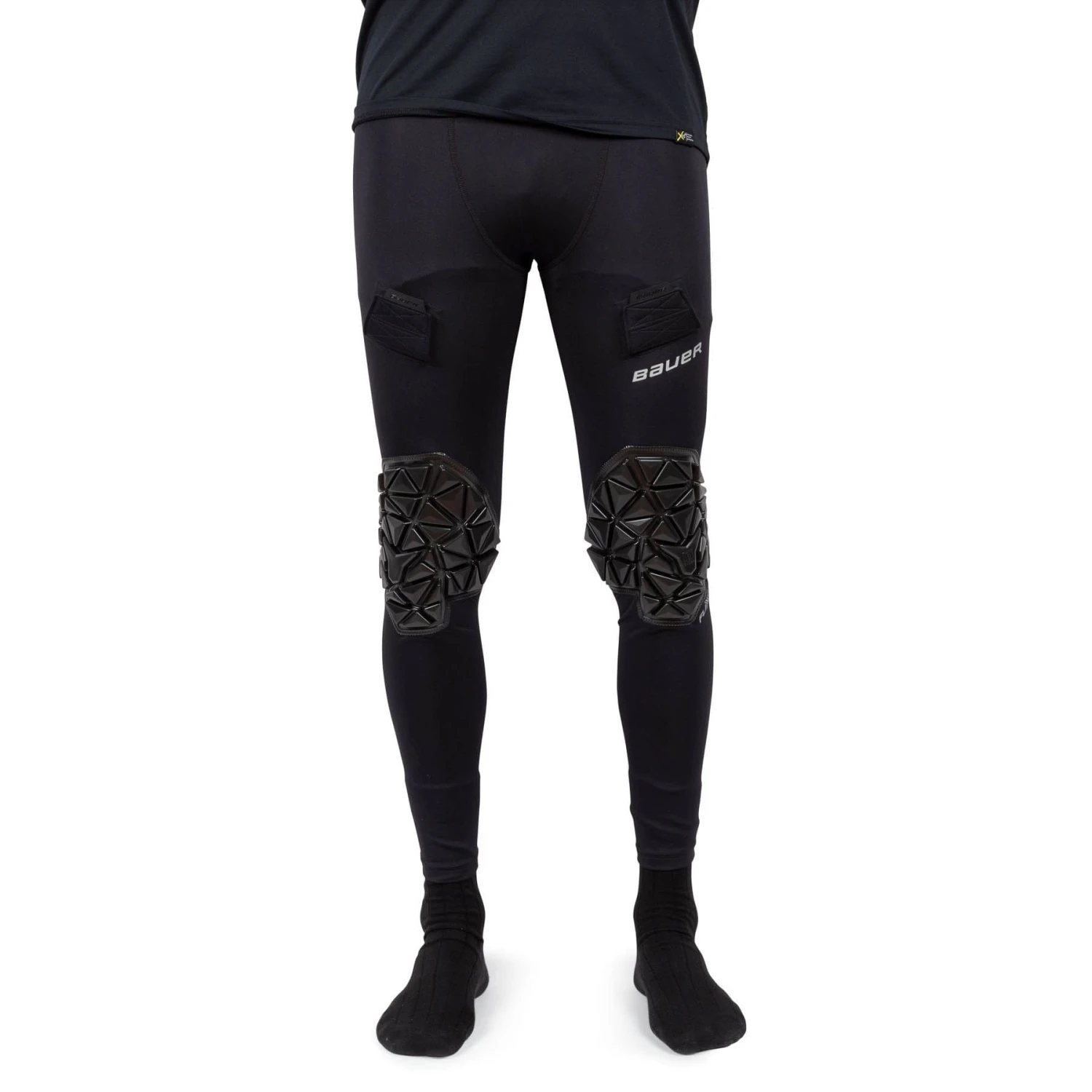 The Bauer Elite Junior Goalie Padded Pants is built specifically for hockey goaltenders. The fitted/compression style pants have strategically placed padding that gives you extra protection in areas where pucks tend to find there way in to the body. The Bauer Padded Goal Pants also feature a velcro sock attachment on the front and back of the thigh. With an elastic style waistband, these padded pants are comfortable to wear under your gear, and form nicely to the body.