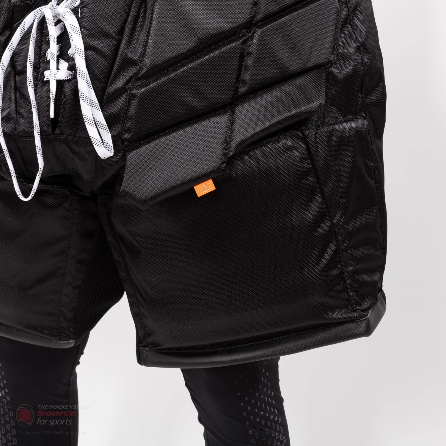 The CCM Axis goal pant features the segmented D3O Smart Material to help disperse energy from high velocity shots. This is coupled with molded plastic and low density foam to give you the protection you need.