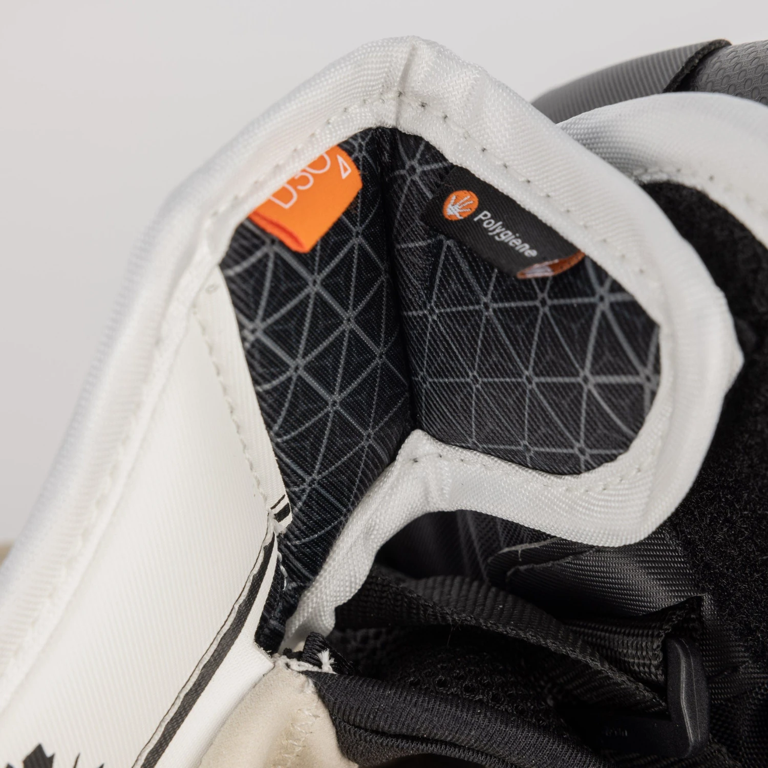 The Dura Palm material on the blocker is made with an ergonomic shape and the feel of AX Suede for premium comfort and connection to the gear. The palm has also been treated with Polygiene and Odor Crunch to fight bacteria and odours. Polygiene is an antimicrobial treatment designed to inhibit the growth of odour-causing bacteria, fungi, and other microbes. Odor Crunch is a liner technology developed by CCM that is specifically designed to combat odour issues in hockey equipment.