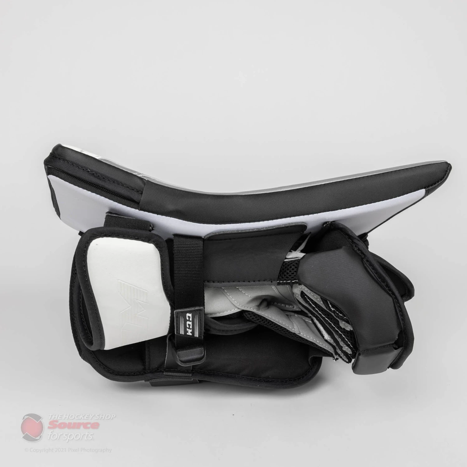 The Source for Sports Exclusive version of the CCM Extreme Flex E5.5 SR Goalie Blocker features all the same features as the catalog E5.5 with upgraded specs. These upgraded specs include; D30 Smart Foam protection on the index finger, Removable finger protection which allows you to customize the fit, and exclusive colorways that are unique to the Source for Sports family. Pair these upgrades with the FlexMotion cuff design, SpeedSkin material, and Nash reinforced palm, the E5.5 Source Exclusive offering gives you more “bang-for-your-buck” over the catalog model.