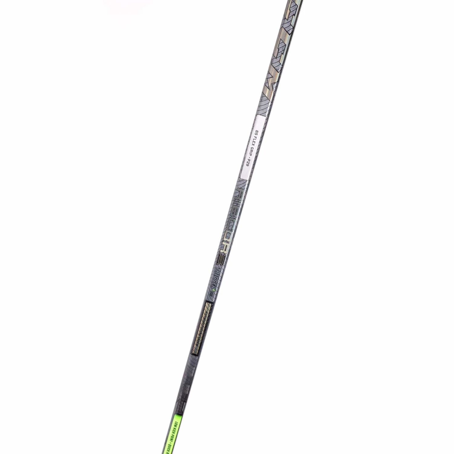 The Trigger 6 Pro stick features an Agility Blade with Sigmatex Spread Tow and Peel-Ply Technology. These technologies coupled together allow the blade to have a thinner profile while also improving the response when stickhandling and release speed when shooting.