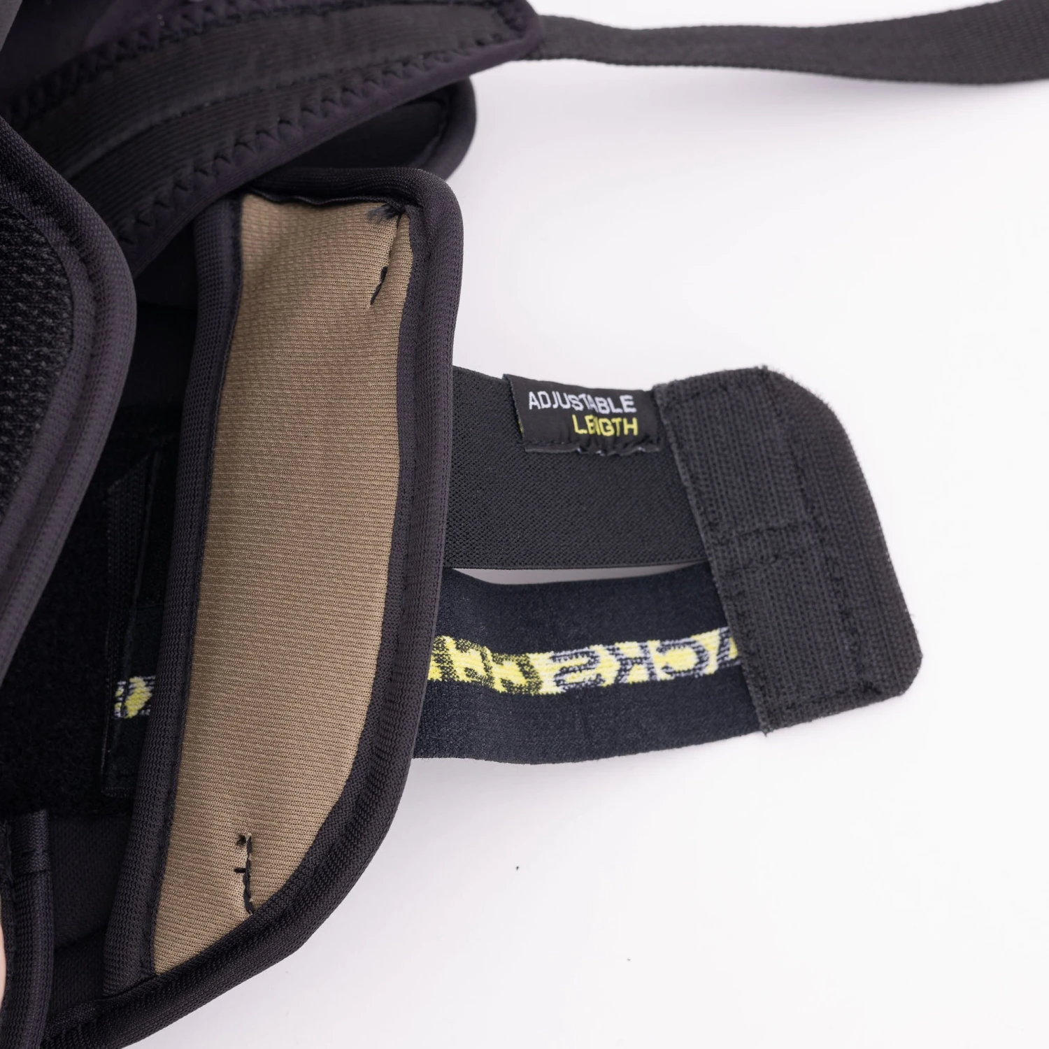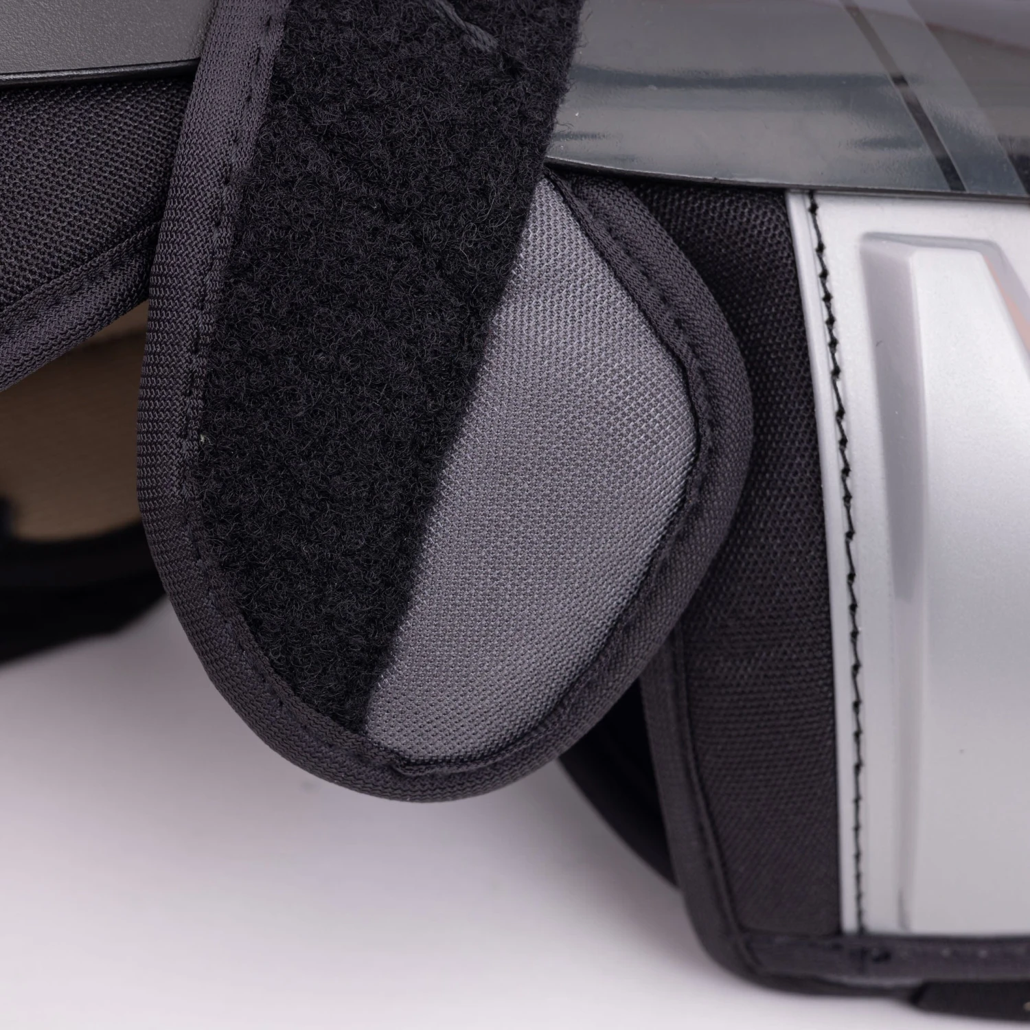The pads come with a fully adjustable dual calf strap and a Hyper X lock strap for a perfect, snug fit around your shins. The double strap is designed to contour around your calf comfortably, and the length can be adjusted in both directions depending on your preferences. The Hyper X lock strap is made with a high-tensile nylon weave for superior durability.
