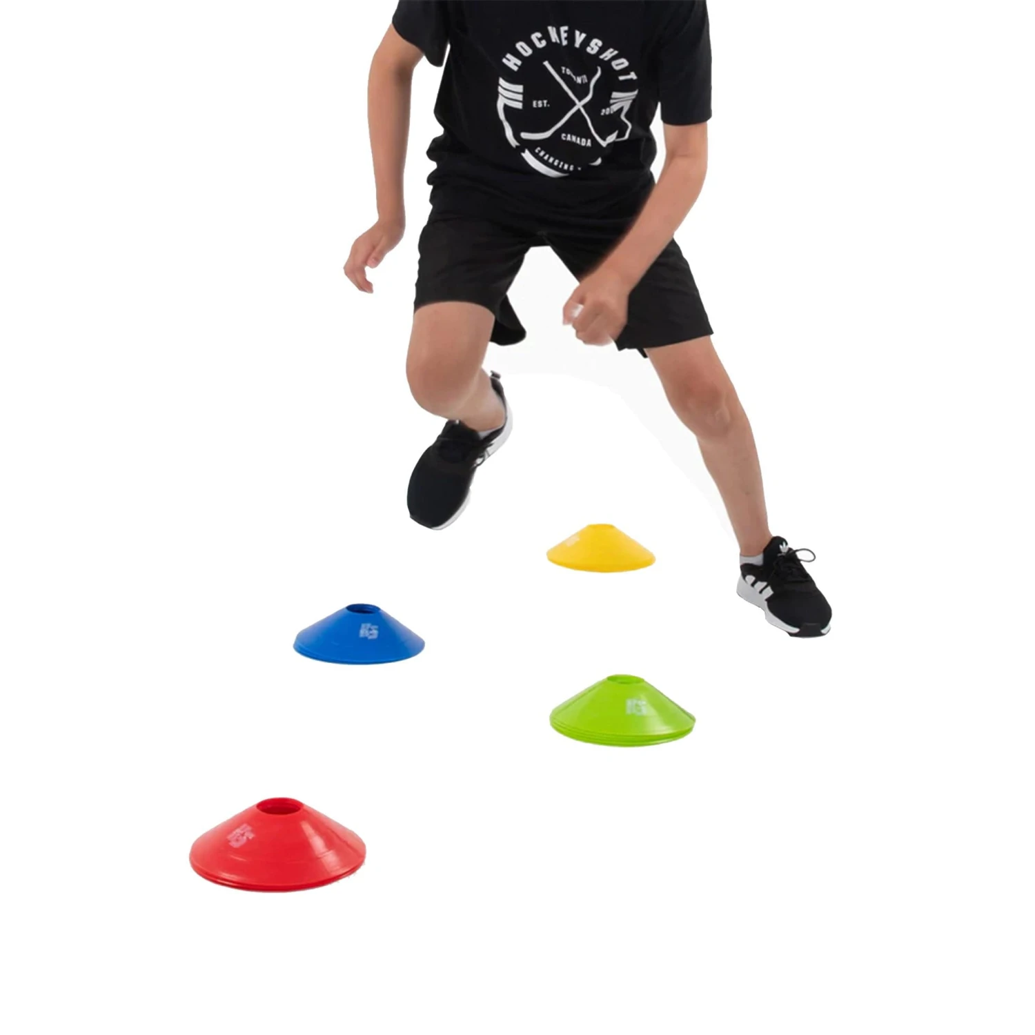 The HockeyShot Agility Cones pack features 20 cones in 4 different colors for a fully customizable training experience. Use the Agility Cones to focus on speed and acceleration workouts. Pair the cones with the Reactive Sniper for an unpredictable and challenging training session.