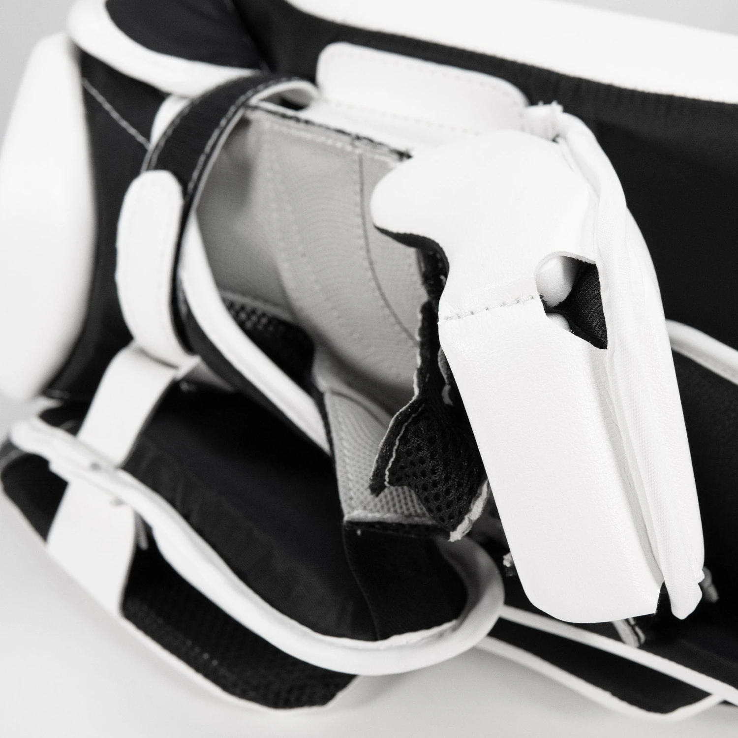 The board is made of thick HD foam with a 595 blocker face edge. 595 is what Lefevre uses to describe the size of the blocking surface. The 595 specs is the most allowed as per NHL rules. The board composition highlights a major feature TRUE and Lefevre wanted to implement into their blocker to match the L12.2. pads, which was rebound control. The blocker is effective in bouncing the puck away with ease.