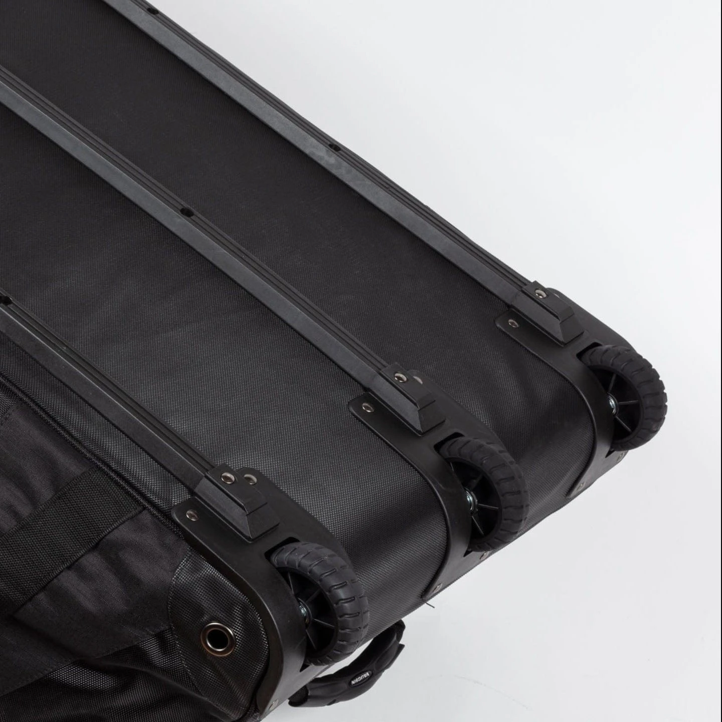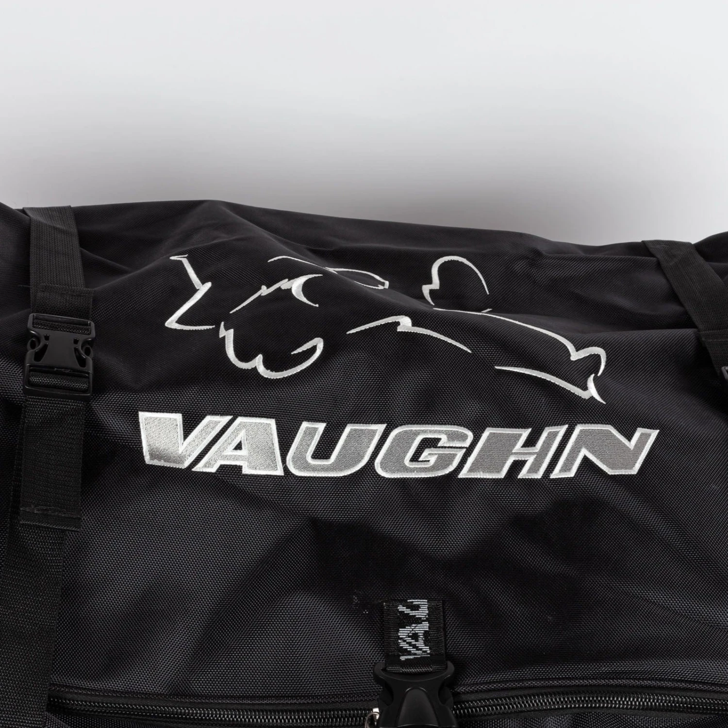 The Vaughn Velocity V10 Pro senior wheel bag is made of a durable 1680 denier nylon exterior that resists rips and everyday abrasions. Embroidered silver logos give the bag a sharp look while heavy duty #10 zippers keep your gear zipped up inside. Both the carry straps and end handles are box stitched and riveted onto the bag for superior durability and resistance to ripping. The internals of the bag feature end and side pockets helping to separate your gear allowing it to be more easily found and to dry quicker. A stable three wheel design gives the bag a stable, supportive base no matter what type of terrain you’re rolling it over.