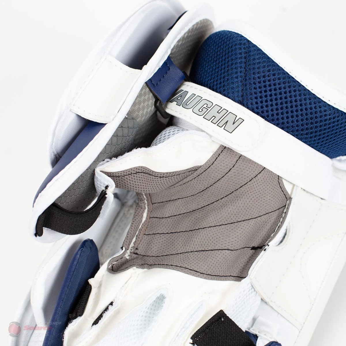 The Vaughn SLR2 intermediate blocker uses a very comfortable palm for ultimate feel when playing the puck. The palm consists of a VX Suede palm with an antimicrobial treatment. Vaughn then adds a grip surface on the exterior of the palm to keep your hand from slipping when handling the puck or making a stick save.