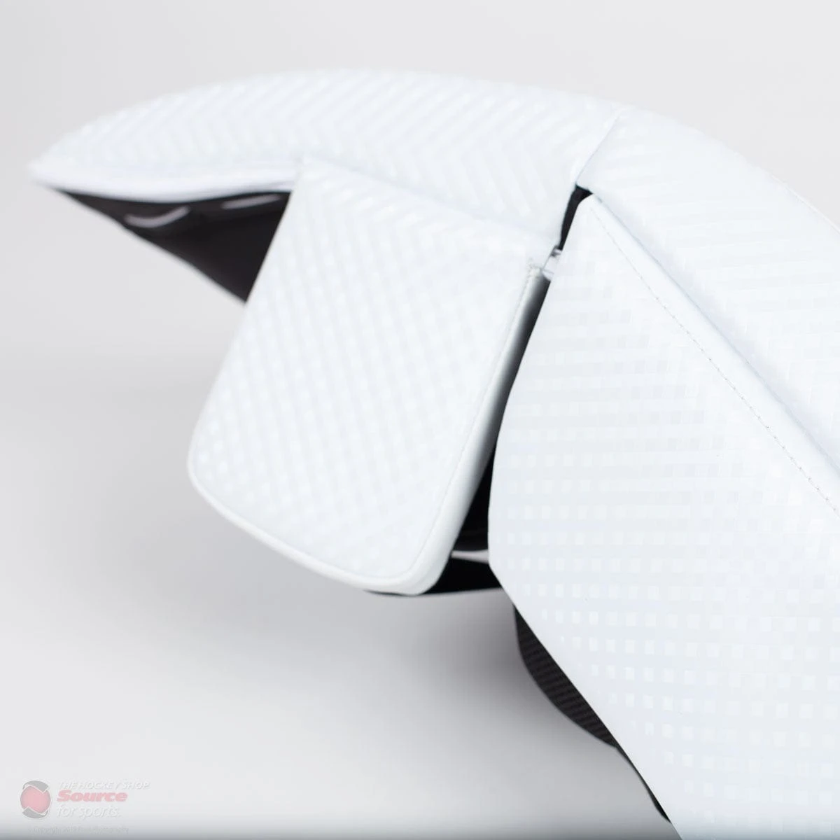 The no break precurved design of the pad provides maximum surface area, while still being curved enough to allow the goaltender to close the five hole effectively. The outer roll of the pad is also beveled to redirect pucks down towards the ice + the corners.